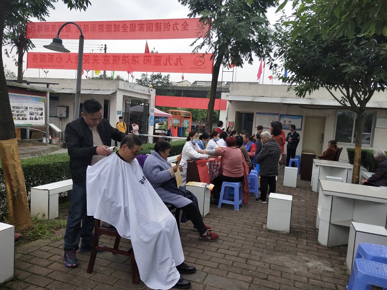 一大早,物業服務人員和醫生共數十余人組成的義診隊伍分別來到仟坤悅街、仟坤·云庭物業服務中心和玉馬小區,開展義診活動。通過事先通知,多地同時開展的方式,三個主要義診點就能基本覆蓋仟坤的主要業主。咨詢和就診的業主絡繹不絕,醫務人員為老年居民檢查視力,血壓,血糖,血常規,尿常規,心電圖等,耐心聽他們講述自己的病癥,詳細解答了咨詢的有關常見病、慢性病等相關知識,并為業主發放了健康宣傳手冊,醫護人員的專業專業認真的態度,贏得了老人們的一致好評。除了免費義診現場還聯系理發店師傅為老人免費理發修面。一位業主一邊理發一邊感嘆道“仟坤物業組織這樣的活動確實是在為我們辦實事,很貼心很溫暖。”