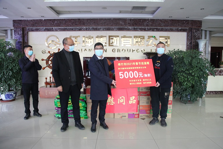 在集團(tuán)一樓大廳,耿垣合市長為集團(tuán)送來了春節(jié)慰問物資,同時為“全國勞模”集團(tuán)旗下鑫坤機(jī)械汽配車間主任趙霞榮同志送來慰問金,耿垣合市長對趙霞榮同志獲得“全國勞模”稱號表示祝賀。并對集團(tuán)為我市經(jīng)濟(jì)發(fā)展做出的成績表示感謝,希望繼續(xù)不斷創(chuàng)新為我市實(shí)現(xiàn)一季度開門紅作出貢獻(xiàn)。同時,耿垣合市長代表綿竹市委、市政府對全體集團(tuán)員工致以新春的祝福和誠摯的慰問。