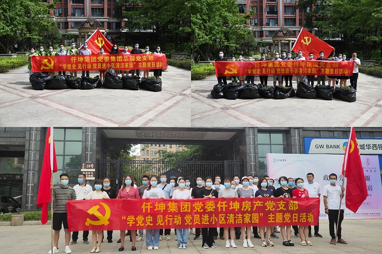 為深入學習貫徹習近平總書記在黨史學習教育動員大會上的講話精神,把黨史學習成效轉化為實踐效果。8月21日,集團黨委組織集團全體共產黨員在仟坤物業(yè)伊頓莊園小區(qū)、天悅南區(qū)、玉馬小區(qū)開展“學黨史 見行動 黨員進小區(qū)清潔家園”主題黨日活動,通過“學黨史、見行動”推動小區(qū)人居環(huán)境改善,生動實踐了黨史學習教育“我為群眾辦實事”。集團黨委書記、副總裁周述軍同志帶領集團黨委委員,各黨支部書記,全體共產黨員,集團青年志愿員者共計130名同志參加了本次主題黨日活動。