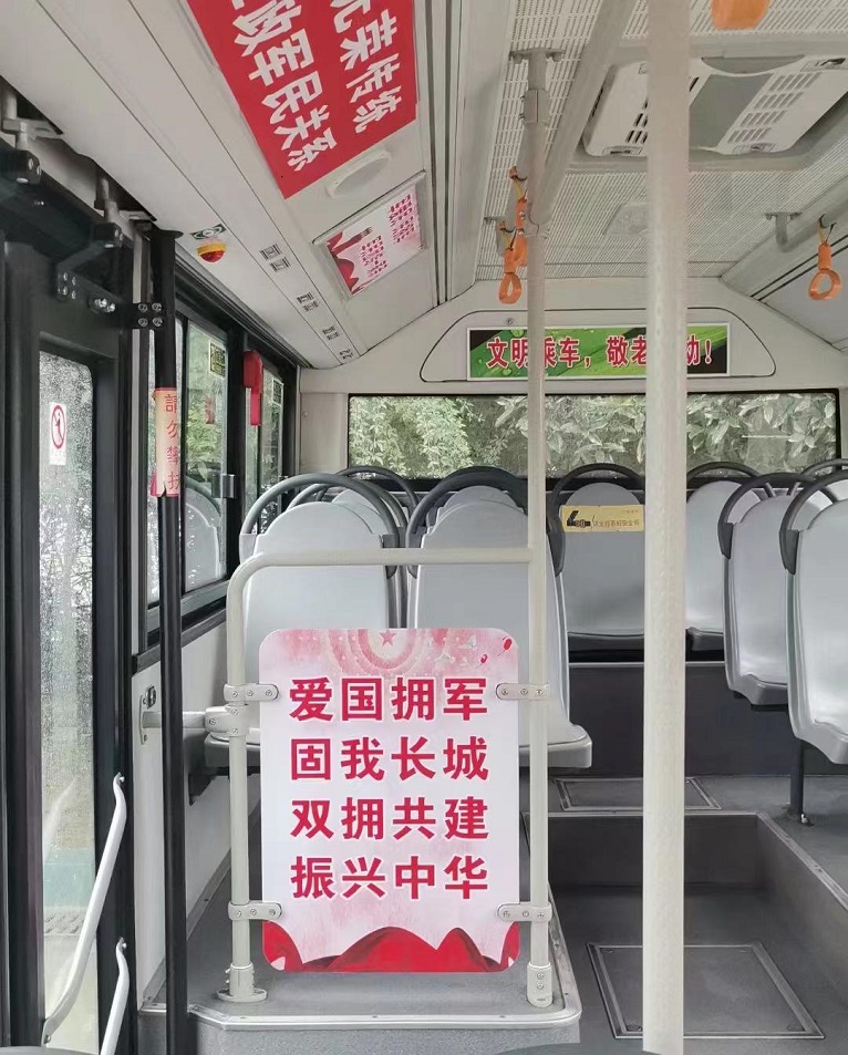 6月2日早上8時30分,一輛特別的公交車駛出綿竹客運中心,車頭上擺放著“擁軍公交專線”字樣的標識牌。這條“軍味”濃厚的公交線路是綿竹市首條雙擁公交專線,是由綿竹市人武部、市退役軍人事務局、市交通運輸局與綿竹宏運公交公司共同打造的一張“擁軍名片”,是駐綿部隊直達市區的尊崇“直通車”。