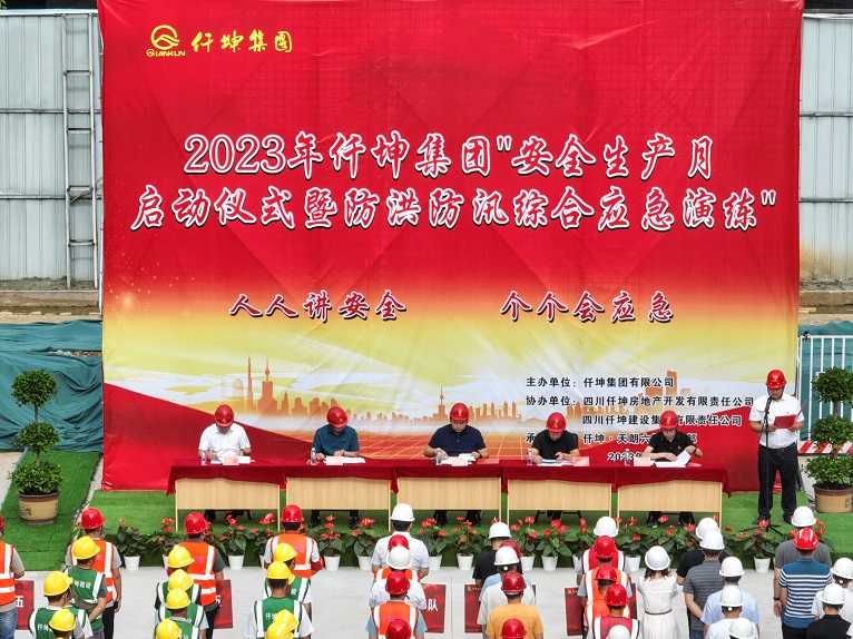 仟坤集團(tuán)為扎實(shí)開展全國(guó)第22個(gè)安全生產(chǎn)月活動(dòng),落實(shí)國(guó)務(wù)院安委會(huì)辦公室、應(yīng)急管理部關(guān)于印發(fā)《2023年全國(guó)“安全生產(chǎn)月”活動(dòng)方案》“人人講安全 個(gè)個(gè)會(huì)應(yīng)急”活動(dòng)主題,進(jìn)一步提升全集團(tuán)安全意識(shí)和避險(xiǎn)逃生能力。6月6日上午,由仟坤集團(tuán)主辦,仟坤建設(shè)、仟坤房產(chǎn)承辦的“2023年仟坤集團(tuán)安全生產(chǎn)月啟動(dòng)儀式暨防洪防汛綜合應(yīng)急演練”在仟坤天朗6期項(xiàng)目工地隆重開展,集團(tuán)總裁謝澤波、集團(tuán)高層領(lǐng)導(dǎo)及各分(子)公司總經(jīng)理安全負(fù)責(zé)人共82人參與了演練的觀摩。