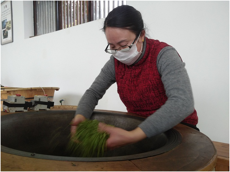 一縷清新、一絲茶香,三溪香茗的制茶車間里,陳翠琪正在手工炒制新采的春茶。今年陳翠琪被四川省總工會評為“十佳四川省五一巾幗標兵崗”。