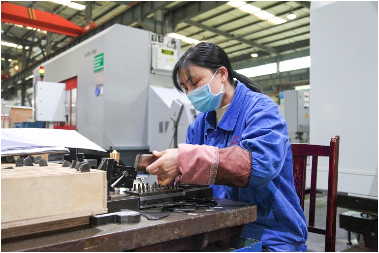鑫坤機械的葉片車間里,伴著機器轟鳴,數控工段銑工楊代蓉正在進行檢料,她在平時工作中一絲不茍,熱愛學習的她不斷在崗位上建功立業。