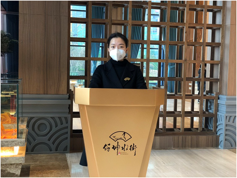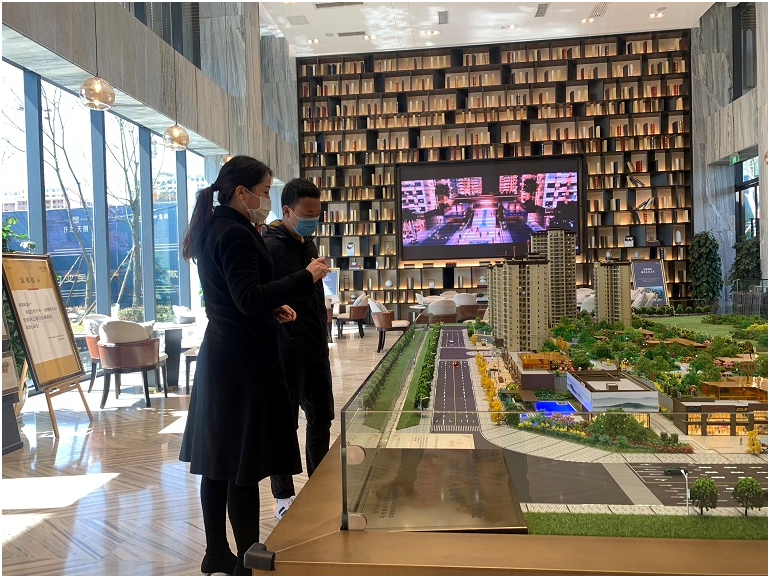 仟坤房產的置業顧問黃靚,正在仟坤水街售樓大廳里準備資料。迎接您的到來。
