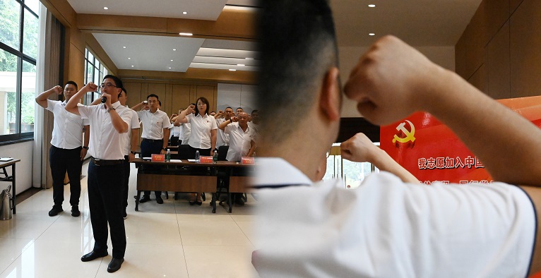 大會在莊嚴的國歌聲中拉開帷幕。大會開始時在黨委書記周述軍的領誓下,2025年新發展黨員代表高舉右拳,面對鮮紅的黨旗莊嚴宣誓。周書記總結了2024—2025年度黨建工作情況,表彰優秀共產黨員、優秀黨務工作者、先進黨支部,為12個2024-2025年度先進集體和先進個人頒發榮譽證書。