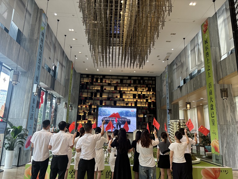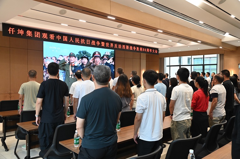 仟坤集團(tuán)黨委積極響應(yīng)號(hào)召,迅速組織開展觀看活動(dòng)。集團(tuán)總裁謝澤波帶領(lǐng)集團(tuán)領(lǐng)導(dǎo)層及總部員工集中在集團(tuán)一樓會(huì)議室收看直播。集團(tuán)各分(子)公司、項(xiàng)目部,通過集中觀看、手機(jī)直播等多種形式同步參與。讓全體仟坤職工在共同回望民族抗戰(zhàn)歷史的過程中,見證國之盛典的歷史時(shí)刻。