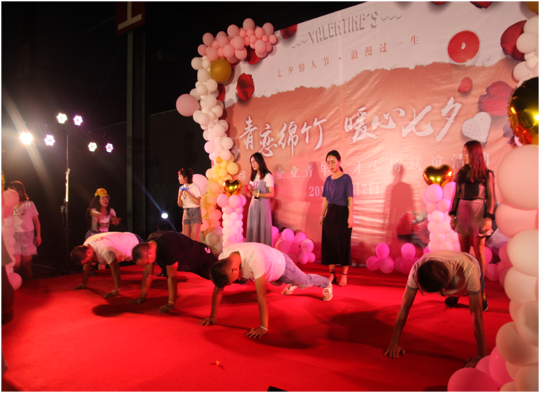 暖色系的氣球和甜蜜的情歌烘托出浪漫的氛圍,7點(diǎn)30分,來自各企事業(yè)單位的單身青年男女陸續(xù)相聚在我集團(tuán)籃球場內(nèi),共赴浪漫之約。兩位嘉賓獻(xiàn)唱情歌《你最珍貴》,婉轉(zhuǎn)的音樂、深情的歌聲、字字含情的歌詞讓空氣中充滿甜蜜的味道,引得臺下嘉賓情不自禁輕聲哼唱。集團(tuán)的6位男嘉賓主動登臺,舞蹈《隔壁泰山》展現(xiàn)了我集團(tuán)青年人才充滿朝氣、時尚潮流的青春面貌以及開朗幽默的個性,博得臺下陣陣掌聲和歡呼,在他們的帶動下,現(xiàn)場嘉賓一掃拘謹(jǐn),主動融于到現(xiàn)場歡樂浪漫的氛圍中。有獎問答環(huán)節(jié),從新時期綿竹精神到詩詞,爭相答題中展現(xiàn)青年知識儲備。而“齊心協(xié)力”、“同舟共濟(jì)”、“心有靈犀”等工作人員精心設(shè)計(jì)的游戲環(huán)節(jié),也讓單身男女在輕松愉快的氛圍中拉近了彼此間的距離,攜手合作爭第一、結(jié)“眼緣”、覓知音。