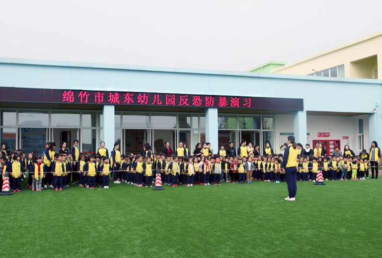為切實做好反恐防暴安全工作,結合"119宣傳日",城東幼兒園于11月9日下午在園區開展了反恐防暴和消防演習。特邀綿竹市公安局特巡警大隊和東北派出所到城東幼兒園進行反恐防暴演習指導,演習前先對園區安保人員進行了反恐應急處理講解。
