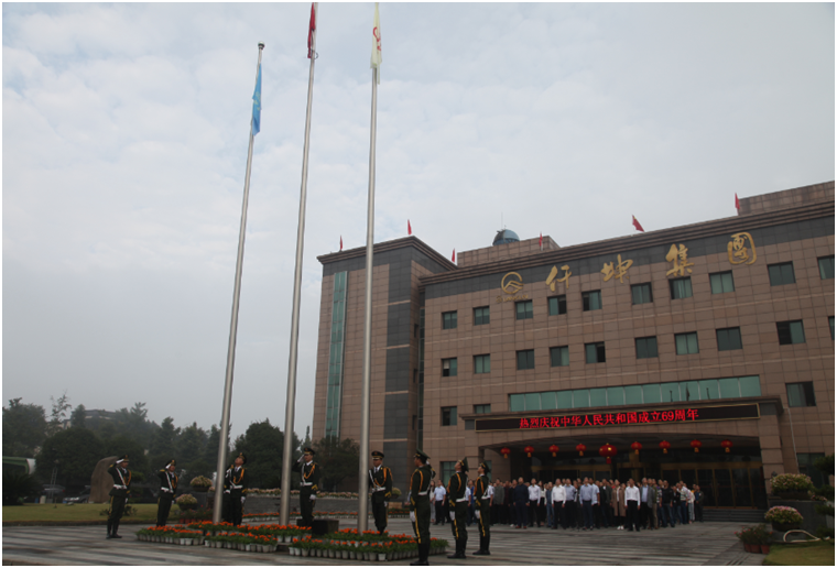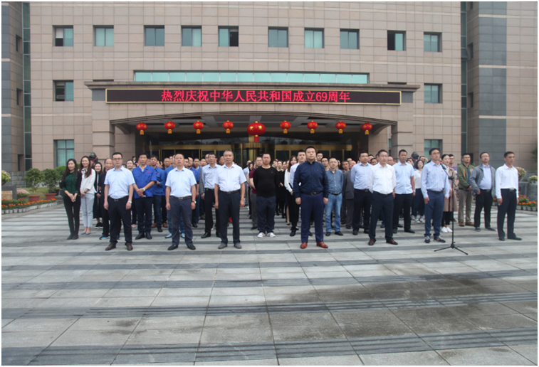 為喜迎中華人民共和國(guó)建國(guó)69周年,9月30日上午,集團(tuán)總裁謝澤波,常務(wù)副總裁葉金春,黨委書記、副總裁周述軍,副總裁趙新強(qiáng)以及集團(tuán)其它高層領(lǐng)導(dǎo)、各事業(yè)部中層以上管理人員和集團(tuán)總部員工著裝整齊的列隊(duì)于總部辦公樓前,隆重舉行升國(guó)旗儀式,在國(guó)旗護(hù)衛(wèi)隊(duì)護(hù)衛(wèi)下,鮮艷的五星紅旗在雄壯豪邁的國(guó)歌聲中冉冉升起,全體人員肅立旗桿下,向著國(guó)旗莊嚴(yán)地行注目禮。