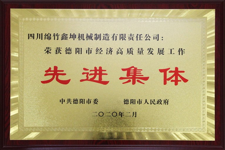 今年2月,四川綿竹鑫坤機械制造有限責任公司榮獲德陽市委、市政府頒發(fā)的“德陽市經(jīng)濟高質(zhì)量發(fā)展工作‘先進集體’”稱號,并于日前授牌。