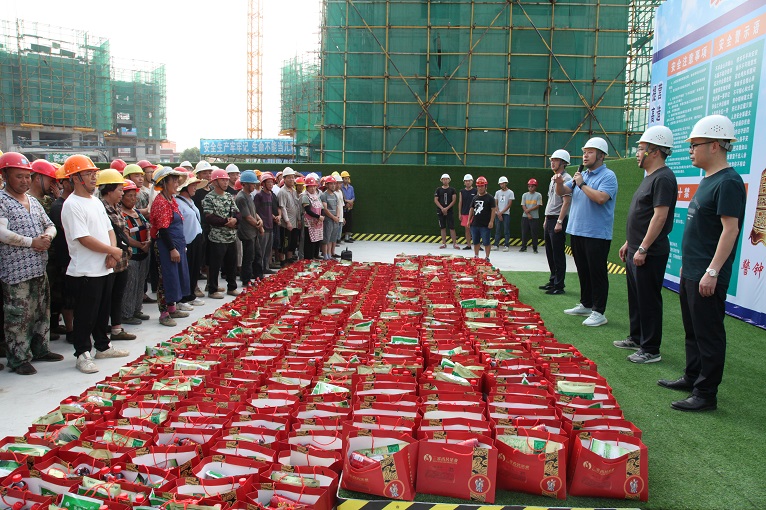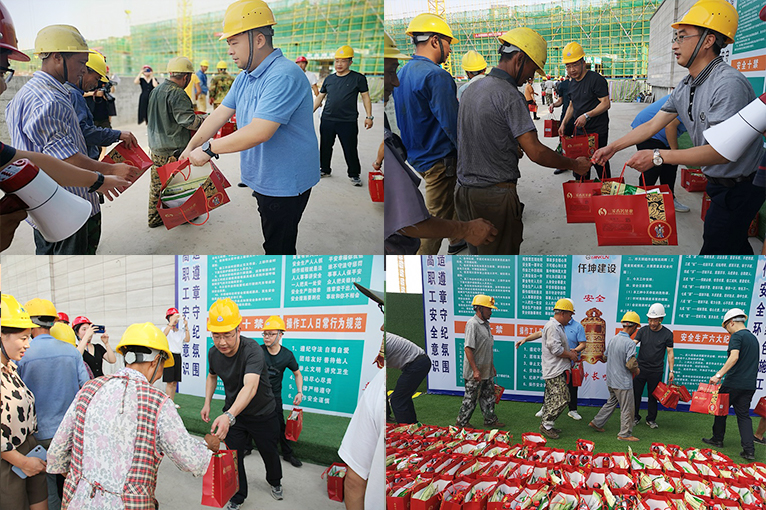 夏日驕陽似火,建筑工地更是熱浪滾滾,為使廣大職工度過一個安全、健康、衛生、清涼的夏季。8月10日上午,仟坤集團總裁謝澤波,集團常務副總裁葉金春,集團黨委書記、副總裁周述軍,集團副總裁趙新強來到仟坤水街和仟坤天璽項目工地看望仟坤建設的一線建筑工人。